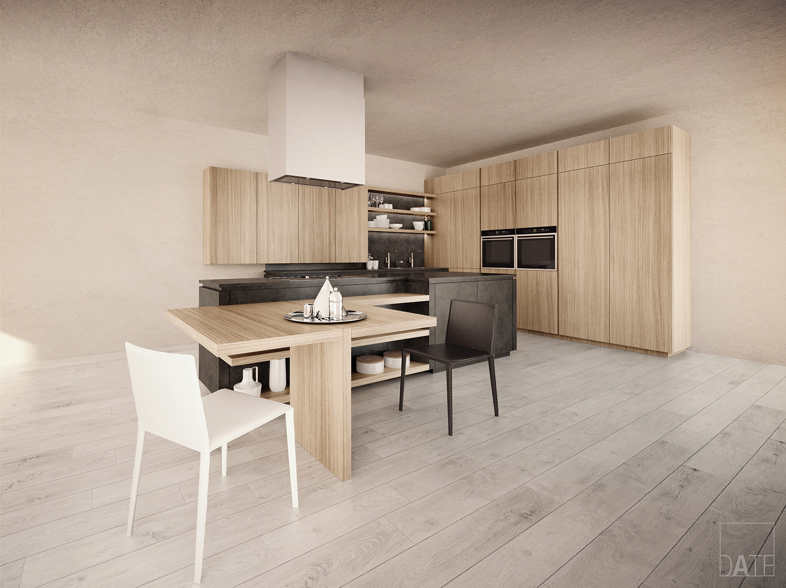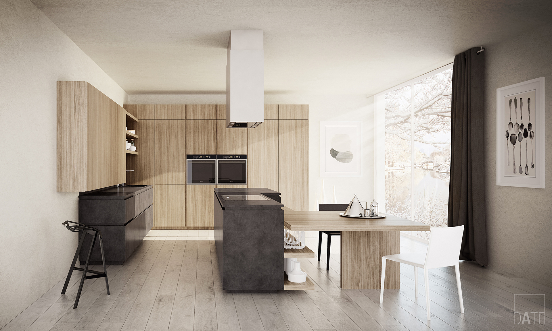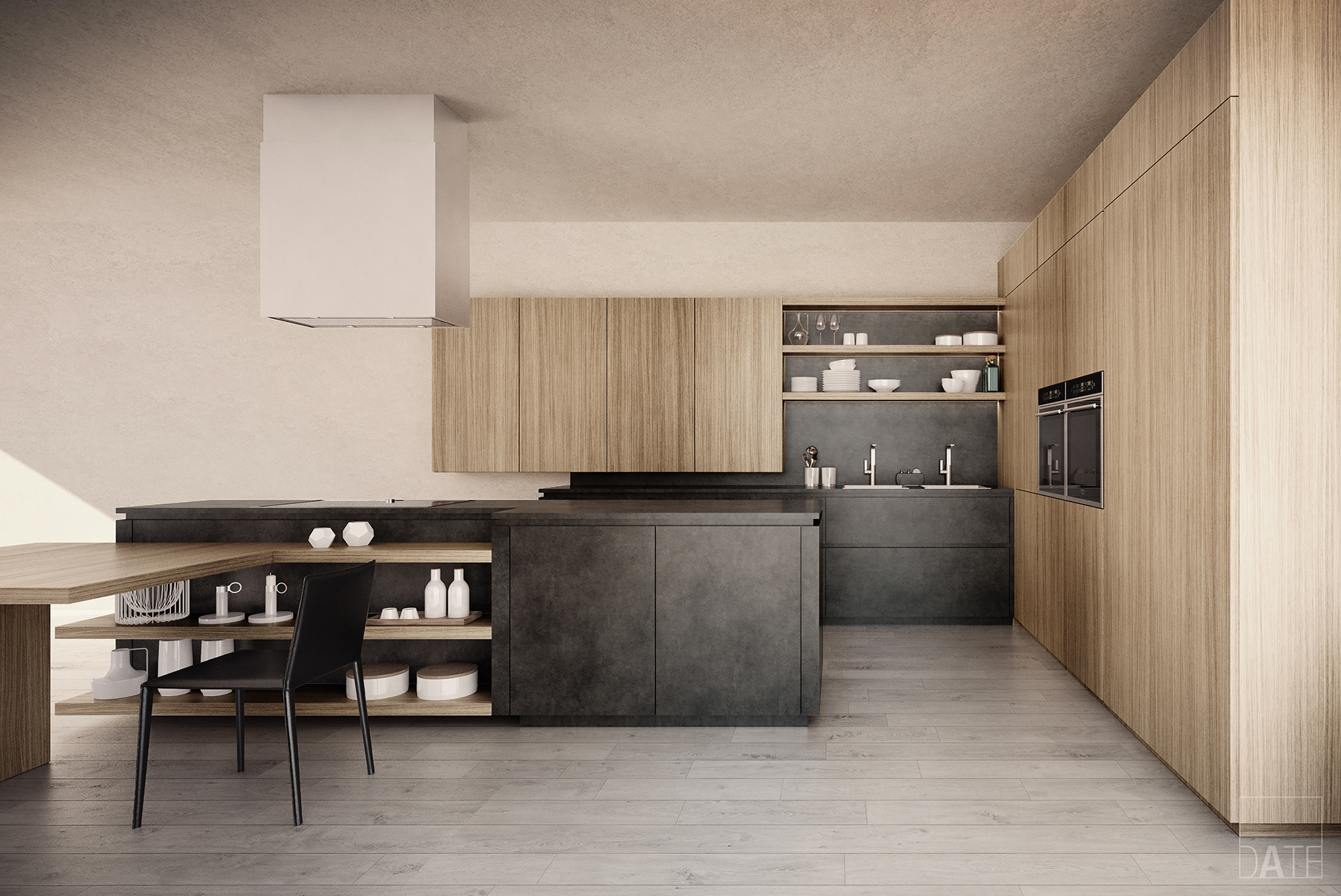 Personal project based on Cloe kitchen designed by Cesar Kitchen with Natural Oak and Dark Eco-Cement finishes.