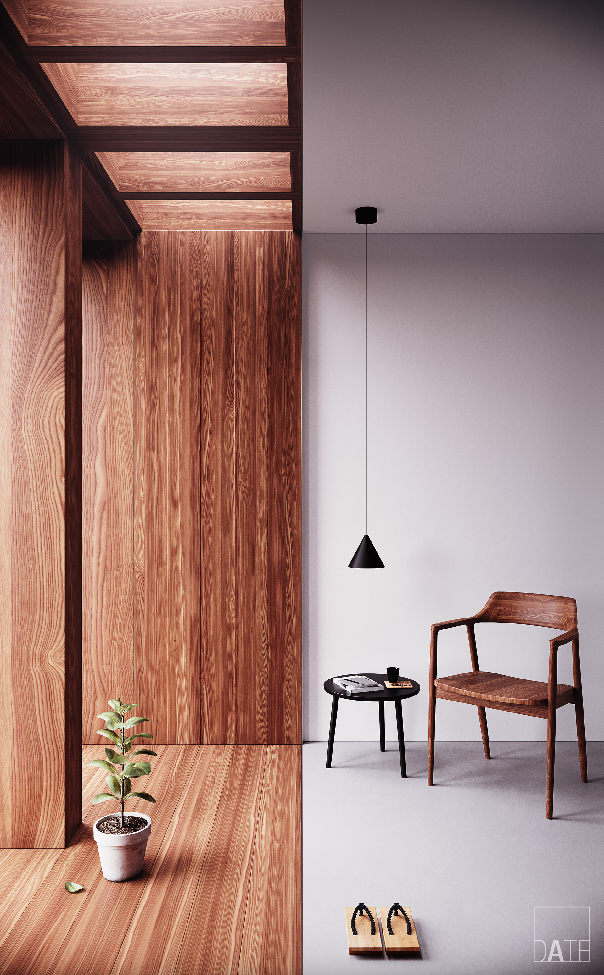 Some pics of a concept for a minimal Zen meditation nook, a quiet space for relax and contemplation.