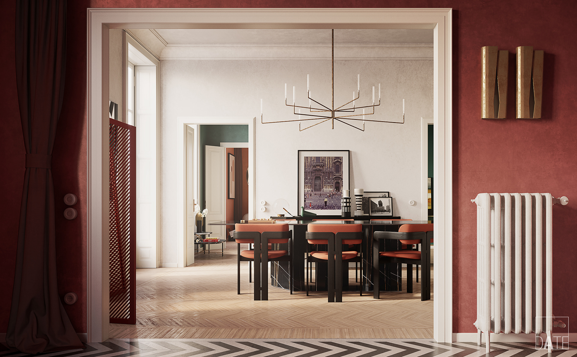 These are few images of a concept for an early 1900's Milanese home. It’s located in an urban context, right in the heart of the city and closely interwoven with art and design world. The idea behind this concept was to recreate a refined atmosphere, an elegant intimate space with lingering memories. The succession of spaces, the architectural details, the design of the furniture pieces, the colors and the shapes are the cornerstones of this concept.